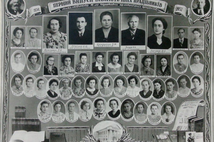 В следующем году после открытия, в 1955-м, исполком Николаевского областного Совета депутатов трудящихся предоставил для размещения техникума два помещения — по улице Ленина (современная Алексея Вадатурского), 10 и по улице Плехановской (современная Марка Кропивницкого), 34. Первый выпуск состоялся в 1957-м. Тогда дипломы получили 57 библиотечных специалистов и 63 культурно-образовательных работника.