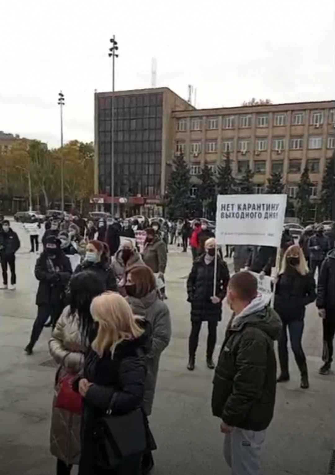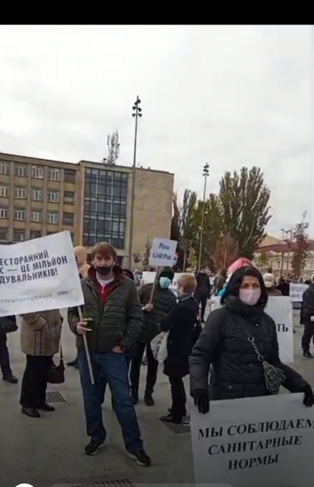Накануне принятия Кабмином решения о введении локдауна выходного дня, николаевские предприниматели в очередной раз вышли на акцию протеста. Около сотни представителей бизнеса, среди которых преобладали владельцы, руководство и работники общепитов, собрались на Соборной площади с плакатами «Дайте работать ресторанам», «Мы придерживаемся санитарных норм», «Нет карантину выходного дня!», «Не можете помочь — не мешайте!», а также много других табличек с названиями учреждений, которые они представляют.