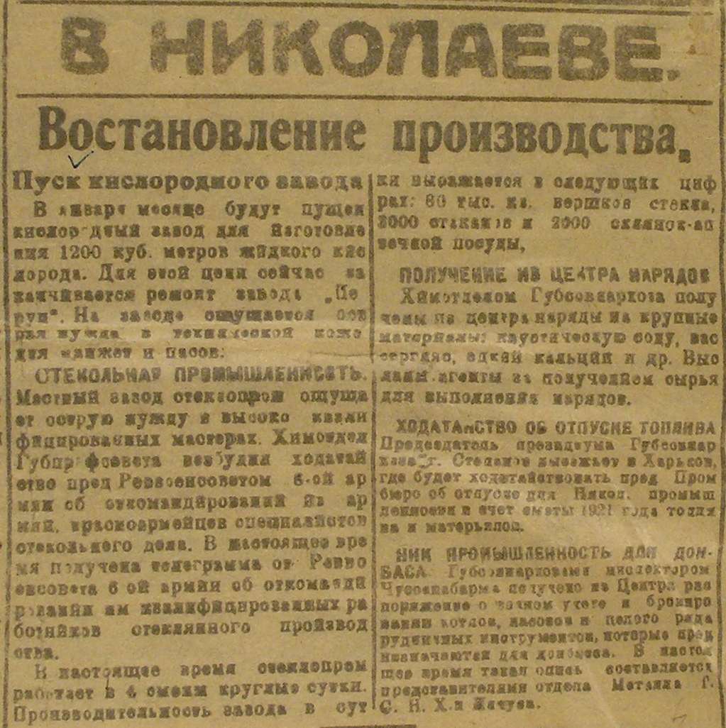 12 червня 1933-го року газета “Радянська правда Миколаєва” надрукувала оголошення Миколаївської ради робітничої молоді. Керівник ради, Володимир Олександрович Мельник, закликав до активної участі у будівництві нового заводу.