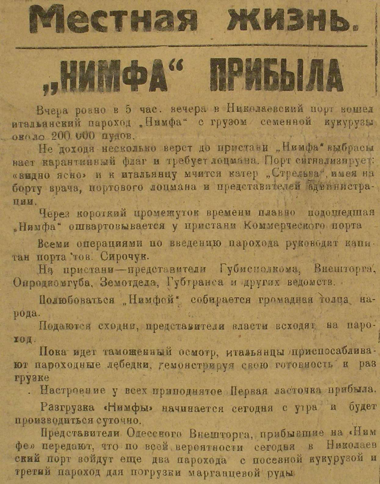 28 лютого 1934-го року цей завод отримав замовлення на постачання 1 200 деталей для суднобудівного цеху. Суднобудівний комплекс розташовувався на березі річки Буг. Неподалік від Інгулу. Про цю подію писали на шпальтах друкованого видання “Красный моряк”. Географічну важливість порту Миколаєва підтверджувала газета “Морський промінь”, редакція якої базувалася на вулиці Миколаївській.